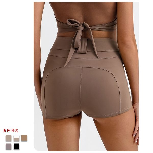 Solid Colors Women Peach Butt Gym Shorts Cross Waist Bike Shorts Pockets Yoga Tights Breathable Fitness Gym Wear Sports Clothing$8.1
