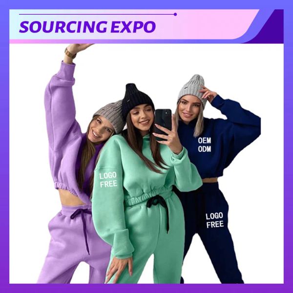 OEM Custom Crop Hoodie Casual Women's Sports Apparel Cotton Fleece Embroidery Crop Top Training Sports Hoodies Ladies Tracksuit$9.99