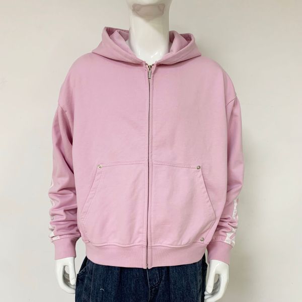 French Terry Zip up Distressed Acid Wash Rhinestone Vintage Heavyweight Oversized Hoodie Manufacturer Screen Print Hoodie$7.87