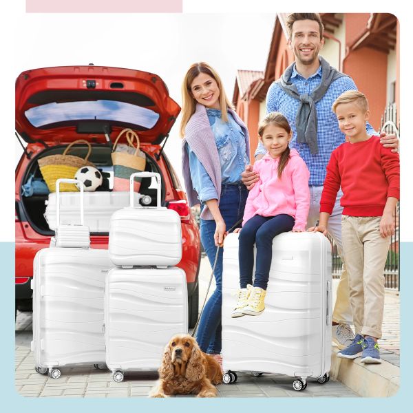 White Fat Shape Luggage Travel Bags Hard Shell Suitcase Set with Pc Material Spinner Wheel Carbon Fiber Trolley Bags$21.78