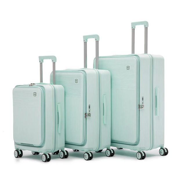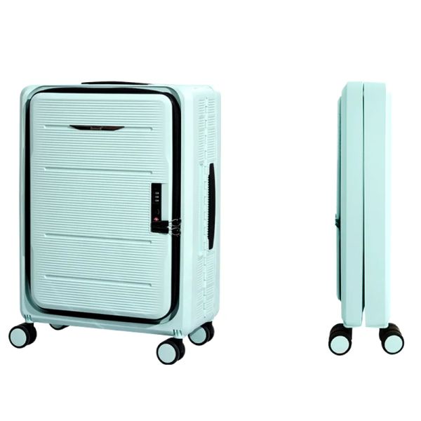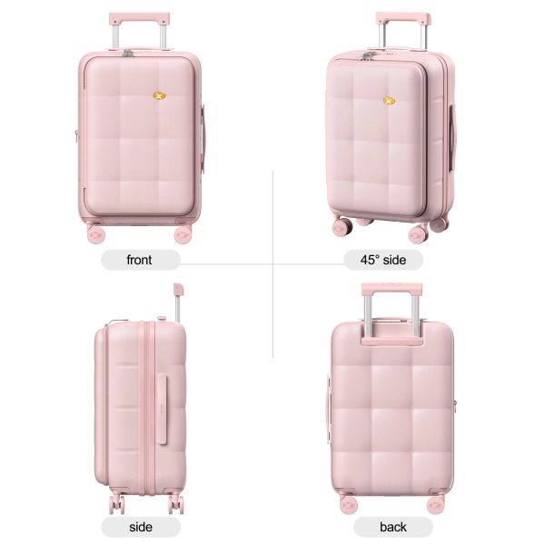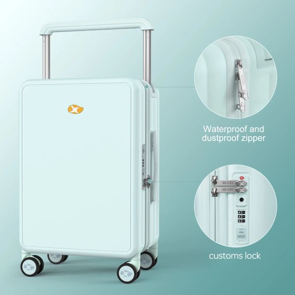 New Design Front Open Suitcase with Phone Holder Water Proof Smart Luggage with Usb Charging Port Suitcase with Cup Holder$24