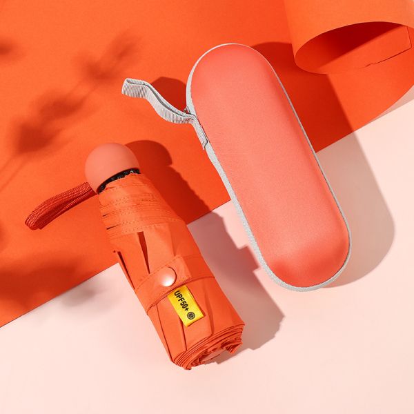 Sunday Titanium Silver Women's Dual-Use Folding Sun Umbrella Five Fold Sunscreen Sunshade with Pocket and Printable Logo Pattern$4.64