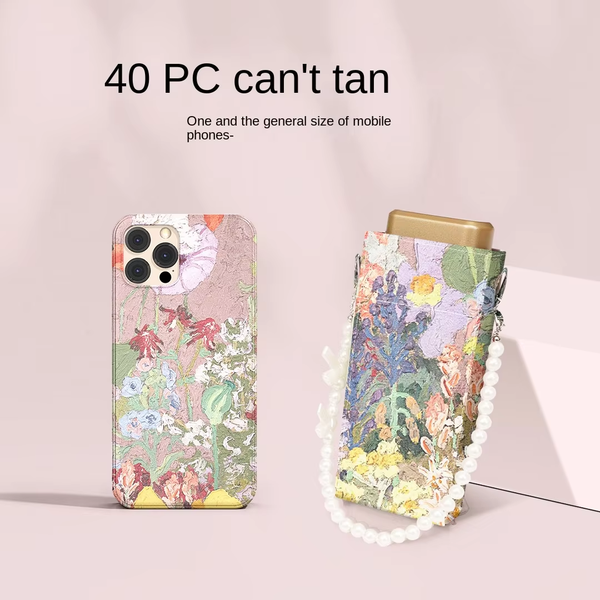 Sunday Ultra Lightweight Oil Painting Colored Glue Sunscreen Folding Umbrella 5- Fold Mini Sunshade Convenient Small Umbrella$5.23