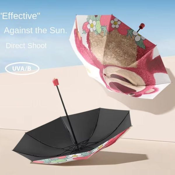 Sunday Authentic Strawberry Bear Cartoon Adult and Children's Folding Three-Fold Sunscreen and Rain Umbrella for Travel$3.57