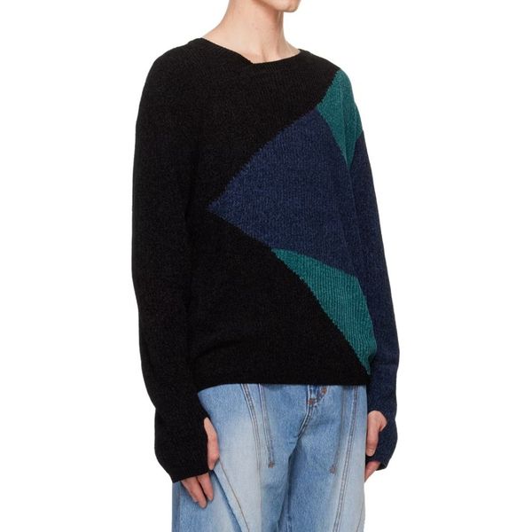 Men's Long Sleeve Black & Blue Fite Jumper in Black Color Pullover Punk Style Pattern Knit Ripped Sweater$8