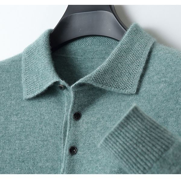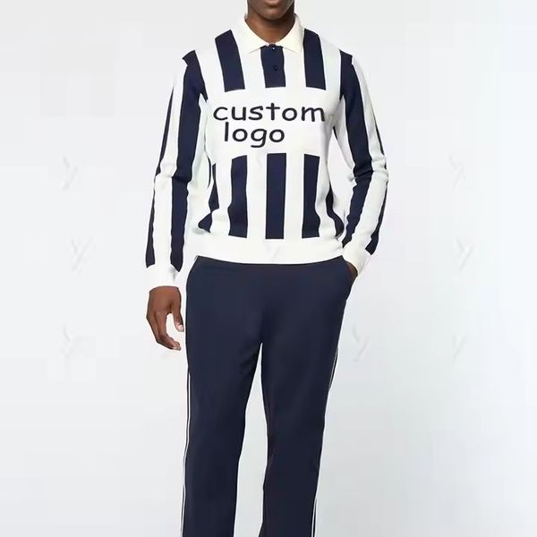 Custom High Quality Autumn Winter Wool Knit Loose Logo Vintage Stripe Casual Button Men's Knitted Polo Shirt Sweater$16