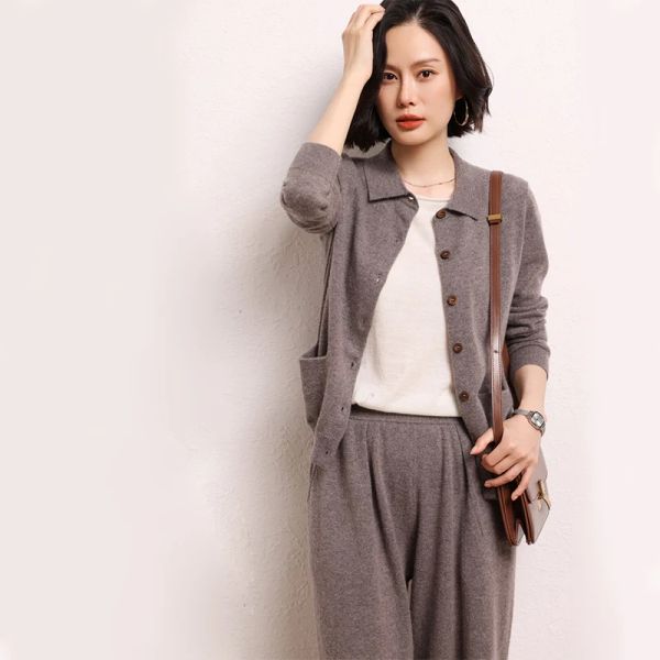 Custom Fashion Sweater Knitted Sets Women Two Piece Set Polo Collar Pullover Top Shorts Trousers Women's Sweater Knitting Set$8