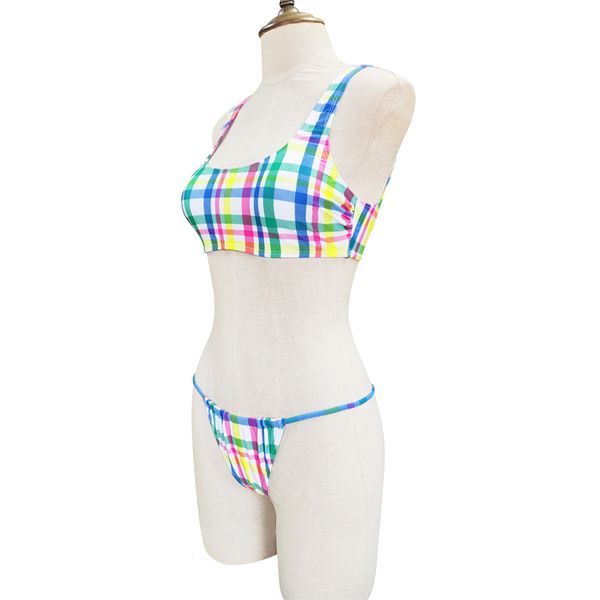Women's Bikini Rainbow Plaid Print Fabric Tankini High-Quality Eco-Friendly Women's Two-Piece Swimsuit Custom Design for Summer$5.6