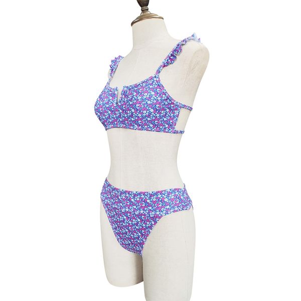 Women Two-Piece Ruffled Sexy Bikini Polyester Nylon Spandex Tropical Print Triangle Tankini Swimsuit Designer Swimming Suit for Ladies Sandbeach SPA Beachwear$5.15