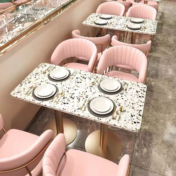 Customize Restaurant Furniture Stainless Steel Gold Leg Table and Chair Pink Leather Cafe Sofa Booth Seating Bench Sets$57