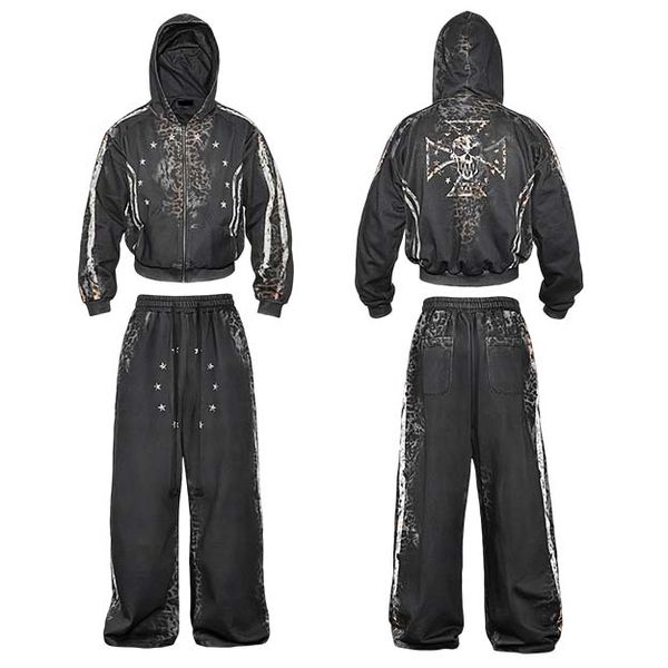 Custom Men's Oversized Boxy Zip up Hoodie Acid Wash 100% Cotton 500 Gsm Y2K Leopard Print High Quality Hoodie Custom Wholesale$11.67