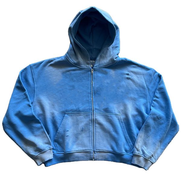 Custom Rhinestone Graphic Print Boxy Fit Hoodie Streetwear Vintage Washed Distressed Oversized Drop Shoulder Men's Zip up Hoodie$10.6