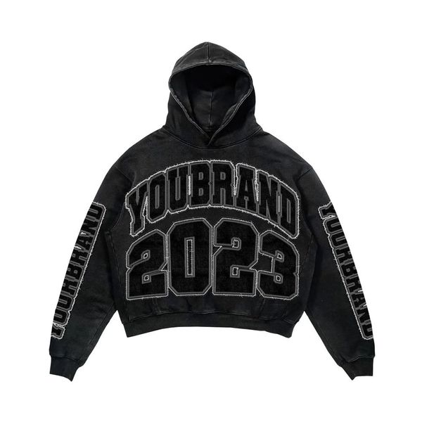 OEM Manufacturer Custom Rhinestone Graphic Print Boxy Fit Hoodie Street Vintage Washed Faded Distressed Oversized Men's Hoodie$10.8