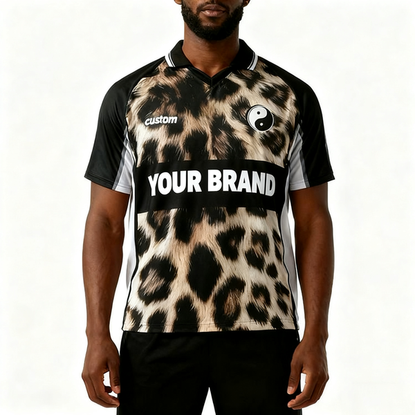 Custom Vintage Causal Cropped Fit Jersey Polo Shirts Fashion Oversized Boxy Leopard Graphic Print Polo Collar t Shirt for Men$6.92