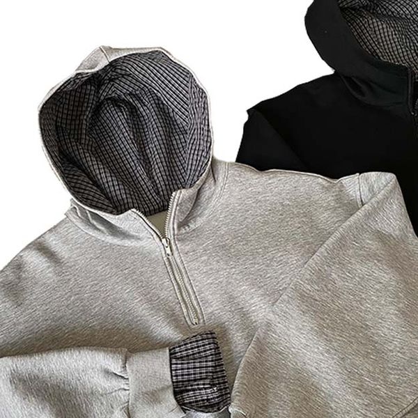 High Quality Hoodie Custom Vintage Checkered Patchwork Design Zip up Hoodies Sweatshirt Men Oversized Streetwear Manufacturer$11.52