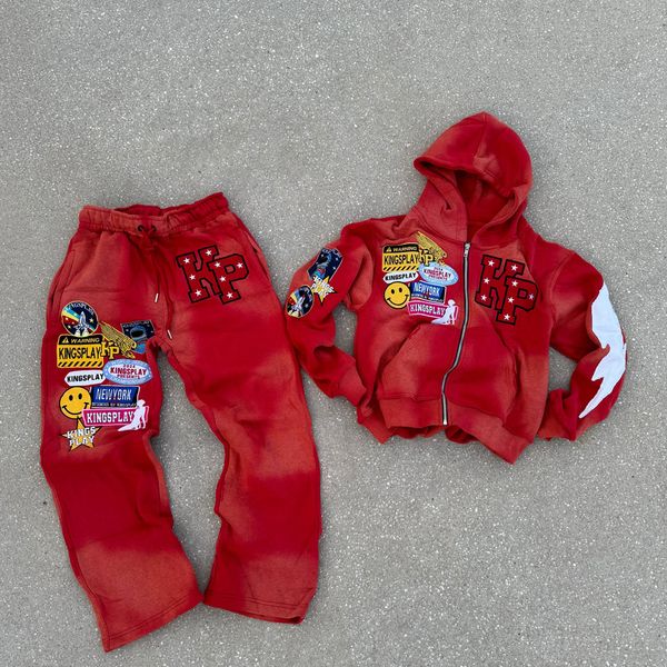 2025 Vintage Streetwear Women's Zip Hoodies Set Customizable Embroidery Patch Acid Wash Sweatsuit Logo on Front$29.99