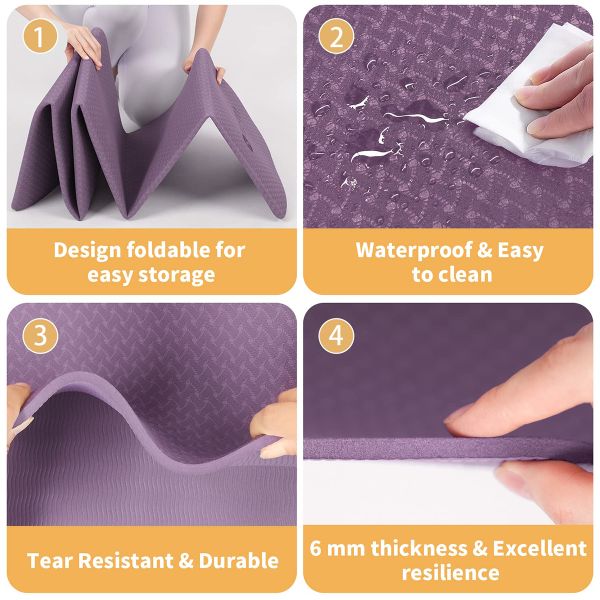 HUAYI Foldable Yoga Mat Eco Friendly TPE Folding Travel Fitness Exercise Mat Double Sided Non-slip for Yoga Pilates & Floor Work$4