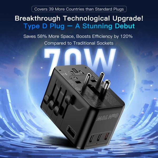 Universal Travel Adapter, 70W GaN3 International Adaptor with PD3.0 Type-C PPS Fast Charging, Worldwide Wall Charger$15.8