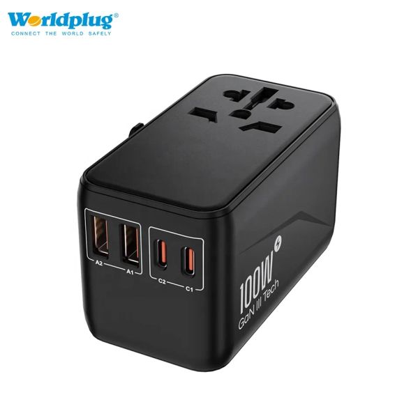 Worldplug Dual Type-C Travel Fast Adapter USB 100W PD Wall Power Travel Adaptor Multi Plug Universal Travel Adapter$19.71
