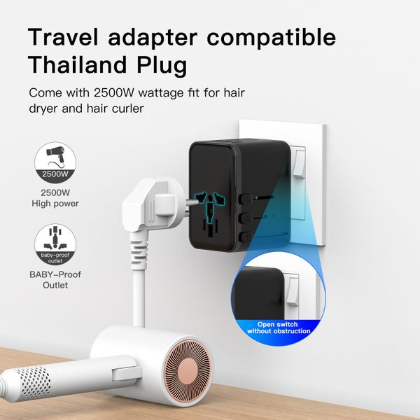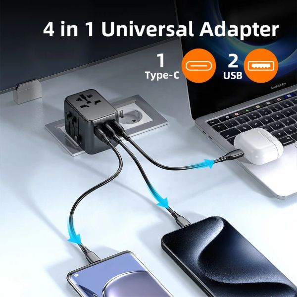 Good Price Travel Adapter, All-in-one International Power Adapter with Fast USB, Europe Adapter Travel Power Type c$7.2