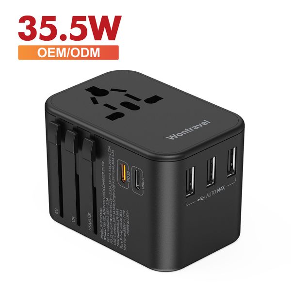 Wontravel OEM ODM Travel Adapter Multiple Output Plugs Socket PD65W World Travel Adapter for Laptop$4.2