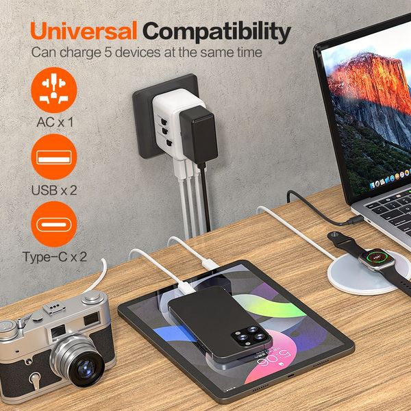 Wontravel 5 USB 70W PD Universal Travel Adaptor Multi Plug International Travel Adapter for Laptop$11.85