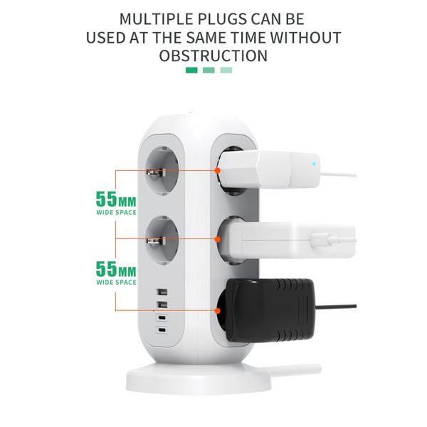 Worldplug 17.5W USB Type C Multi Port Tower Charger Station EU Extension Power Strip Socket Travel Charger Adapter$21.99