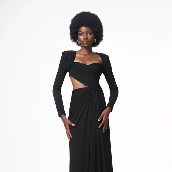 Luxury Black Cut-Out Maxi Dress Safari Style Floor-Length Sheath with Natural Waistline Local Brand From Vietnam ENZO&LEO$180