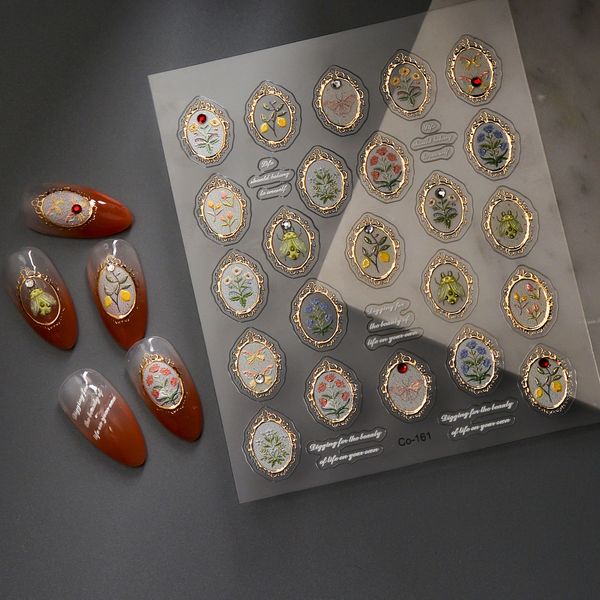 Nail Supplies Custom Photo Frame Embossed 5D/3D Nail Decal Flower Gilded Manicure DIY Accessories Press on Nail Decal$0.38