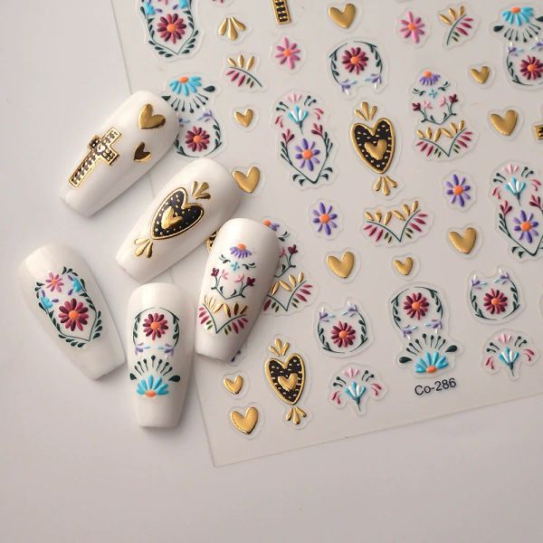 Nail Supplies DIY Press Nail Decal Metallic Flower Adhesive Sliver Gold Leaf Beauty Products with Love Heart Hot Sale Art$0.35