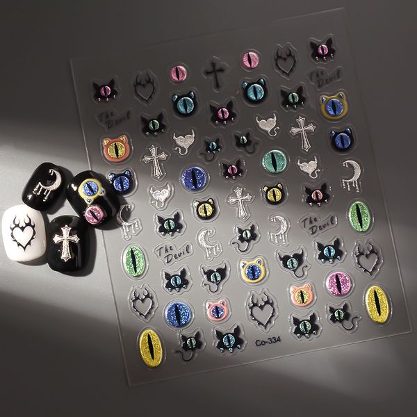 French Cat Eye Nail Art Stickers 3D/5D DIY Adhesive Decals Magic Glasses Cat Paw Eye Glitter Effect Cat Head Flame for Beauty$0.35
