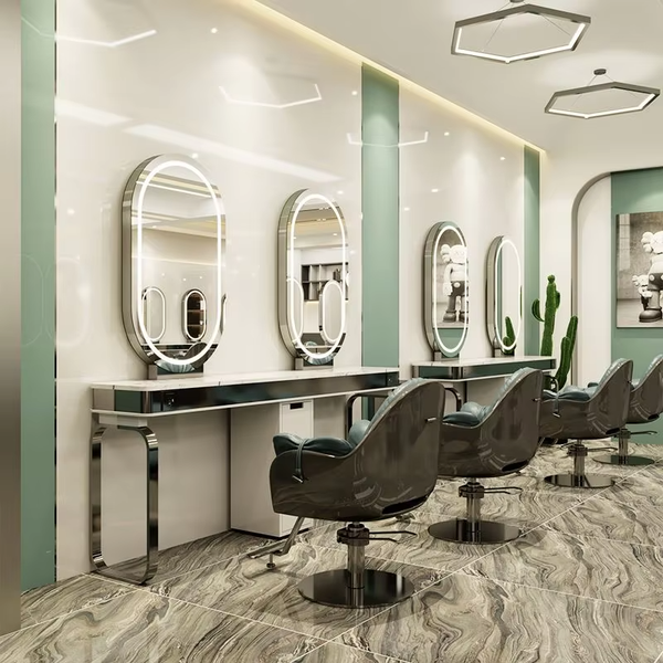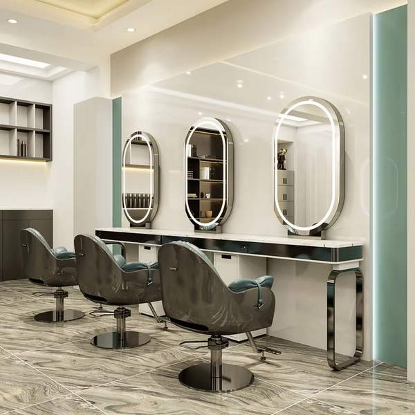 Modern Double-Sided Stainless Steel Barber Hair Styling Beauty Stations Luxury LED Makeup Salon Mirror Beauty Salon Shop Glass$236