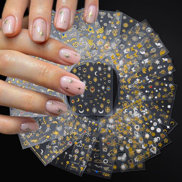 New Design 20pcs/Bag Gold 3D Nail Sticker Star Moon Butterfly Heart Adhesive DIY Manicure Supplies with Art Accessories Hot Sale$0.9