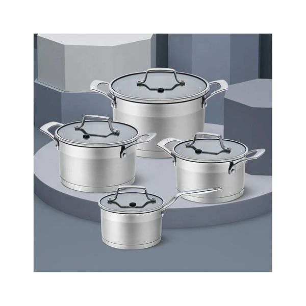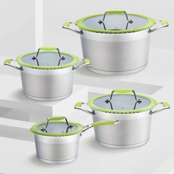 Their extensive product portfolio includes over 8 series and 150 items, featuring stainless steel cookware sets, whistling kettles, cutlery, stock pots, steamers, and kitchen tools. These products are designed for durability and modern aesthetics, utilizing materials like 201 and 304 food-grade stainless steel with features such as induction-compatible bottoms, non-stick coatings, and tempered glass lids.