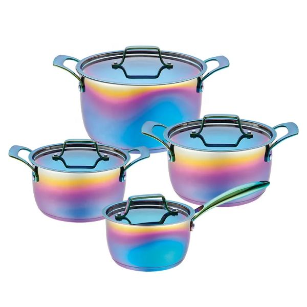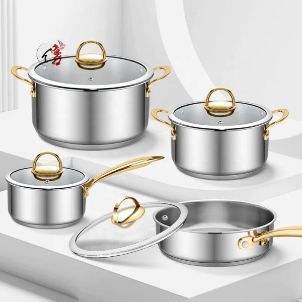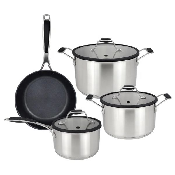 Wholesale Custom Kitchen Utensils Stainless Steel Cooking Pot Set Pots and Pans Set With Steel Handle 8 Pieces Cookware Set$5.86