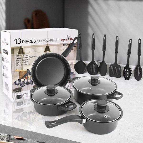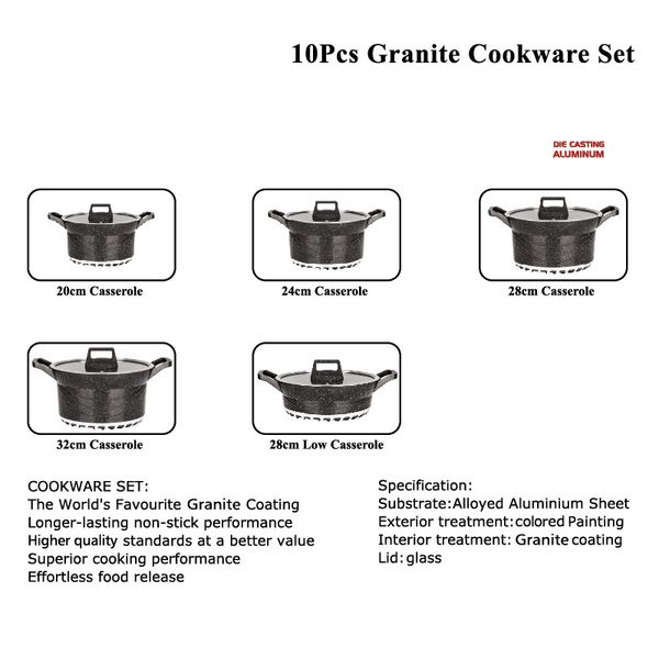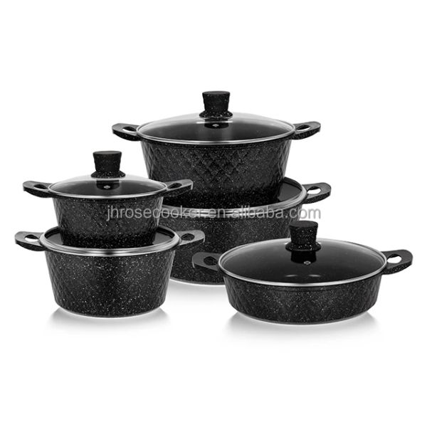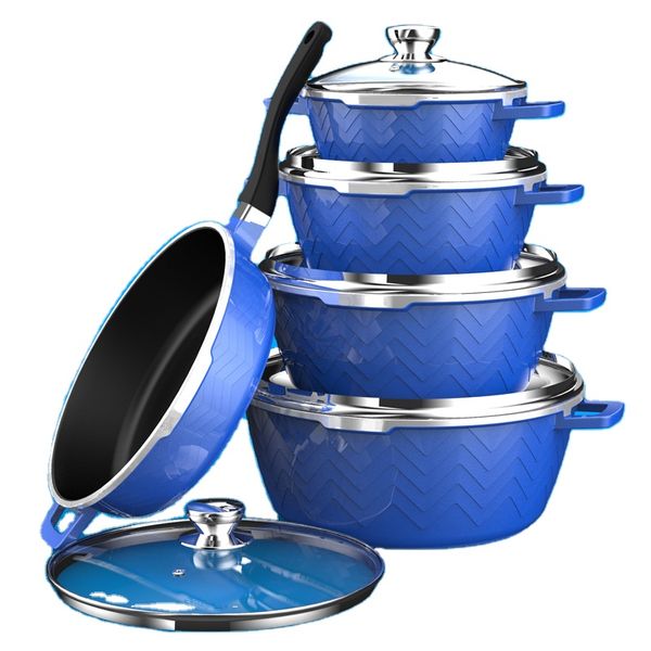 Wholesale 10pcs Cooking Pots and Pans Non Stick Ceramic Cookware Sets Die Casting Aluminium Soup & Stock Pots with Lid Marmites$41
