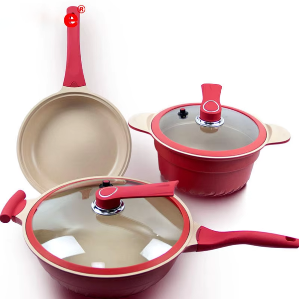 Wholesale New Design 6pcs Die Cast Aluminum Cookware Sets Micro Press Induction Bottom$25