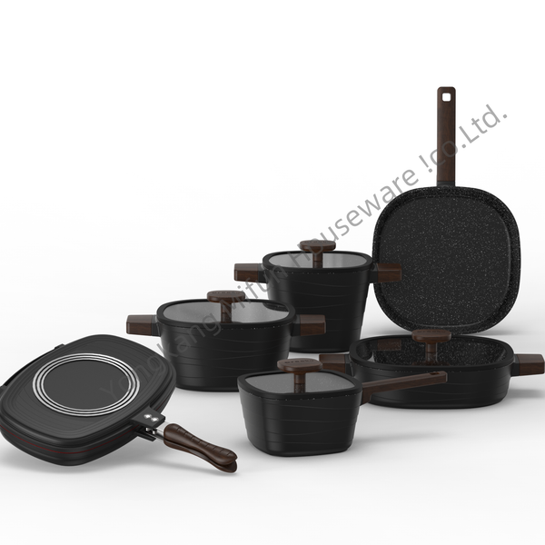 Square Sufuria Cookware Set Kitchen Non Stick Marble Kitchenwares Wholesale Cookware Sets Induction Kettle Skillet Cookware Set$42