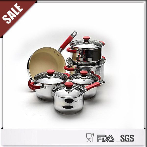 Wholesale Custom Kitchen Utensils Stainless Steel Cooking Pot Set Pots and Pans Set With Silicone Handle 10 Pieces Cookware Set$25