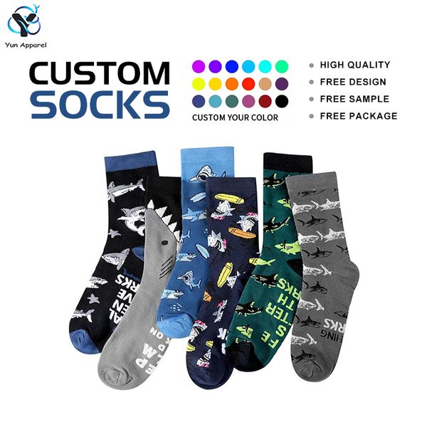 Custom Logo Low MOQ Crew Socks for MenNovelty Casual Cotton Sock Custom Package and Made Design$0.68