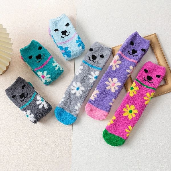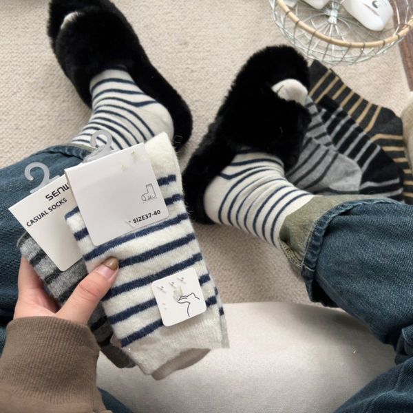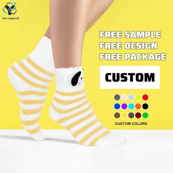 Wholesale Cozy Winter Warm Floor Socks Breathable Custom Logo Cute Striped Design for Women Casual Free Bag$1.1
