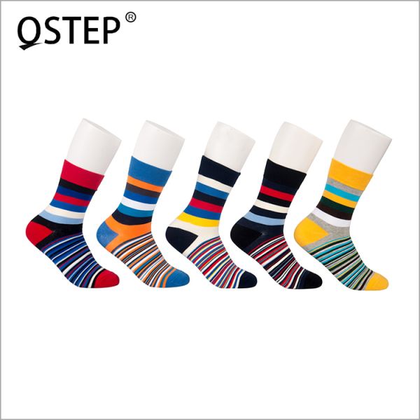 Wholesale Men Spring Crew Combed Cotton Socks Striped Breathable Business Socks$0.92
