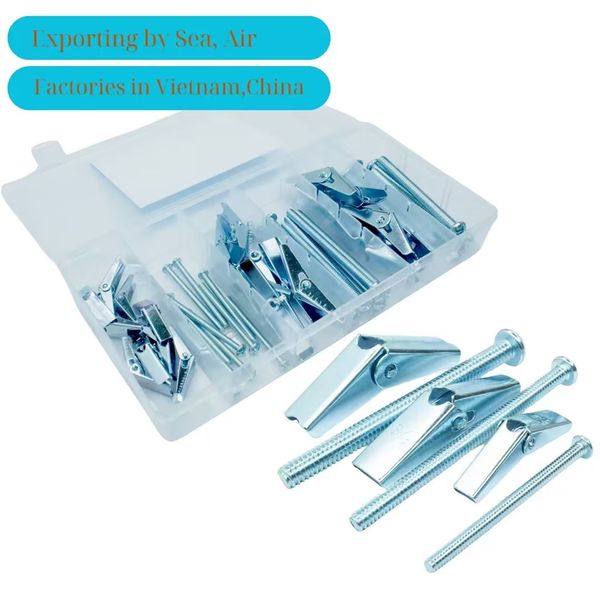 24-Pcs US Stock Zinc Plated Steel Toggle Bolt Assortment Kit 1/4\" 3/16\" 1/8\" Phillips Head Toggle Wing Nut Bolt Set Inch$1.2