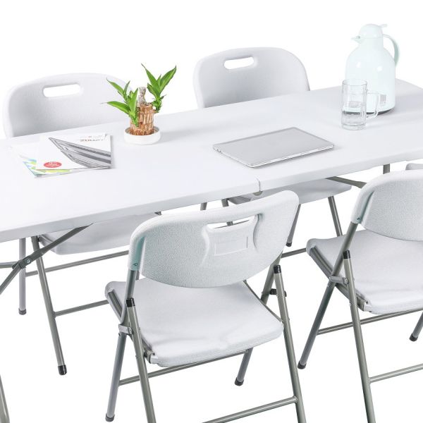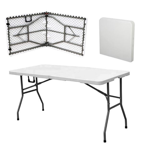 Popular 6 ft Plastic Folding Rectangular Table Outdoor Fold-in-Half Mesa Plegable Camping Table Dining Warehouse Park Farmhouse$19.4