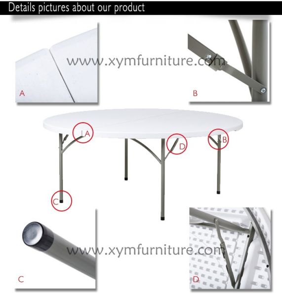 Rental One Piece Cheap 5ft Outdoor Dining White Plastic Folding Round Banquet Tables for Sale$40.3