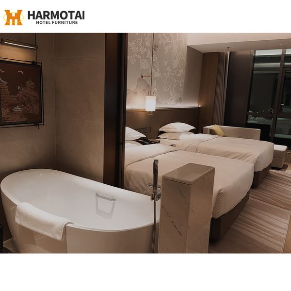 High-End Hotel Bedroom Furniture Sets Customizable Twin Bed Design for Apartment Use Quality Wood Material Factory Price$1200