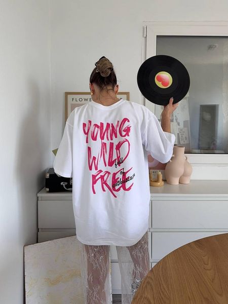Wholesale Women's Round Neck Pulverized Short Sleeve T-shirt Custom Letter Oversize Heavy Cotton Print Women's T-shirt$6.19