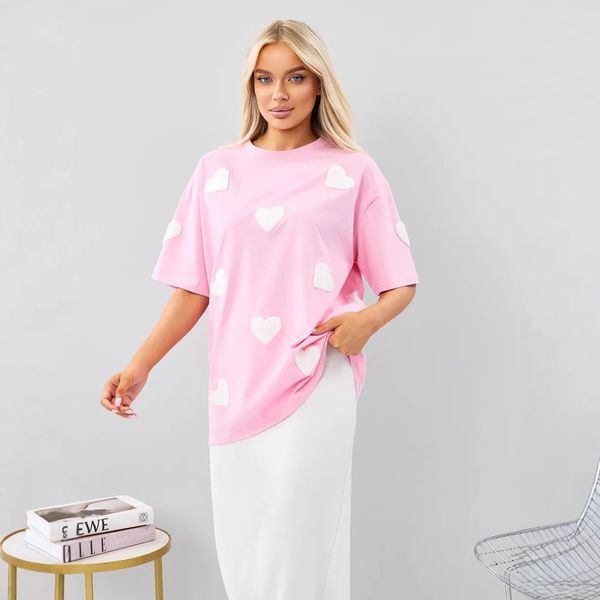 Wholesale Vintage Streetwear High Quality Custom Logo Women's T-Shirt Casual Cotton Short Sleeve Heart Design T-Shirt$7.3