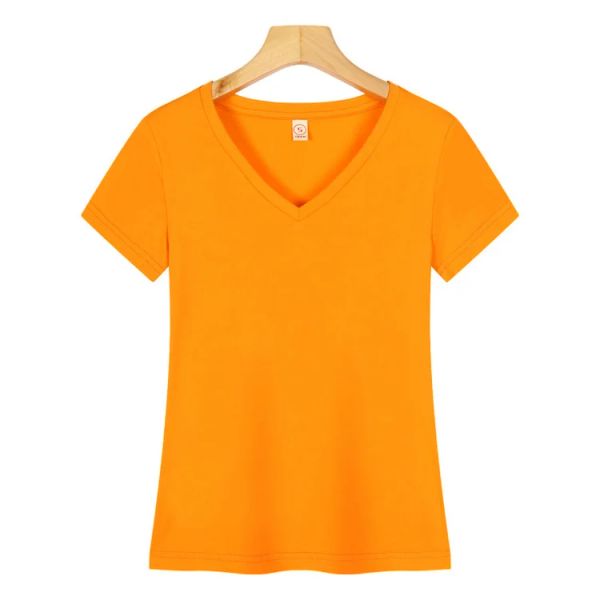 Wholesale V-neck T-shirt Blank Slim Fit Cotton T Shirts for Ladies$1.66