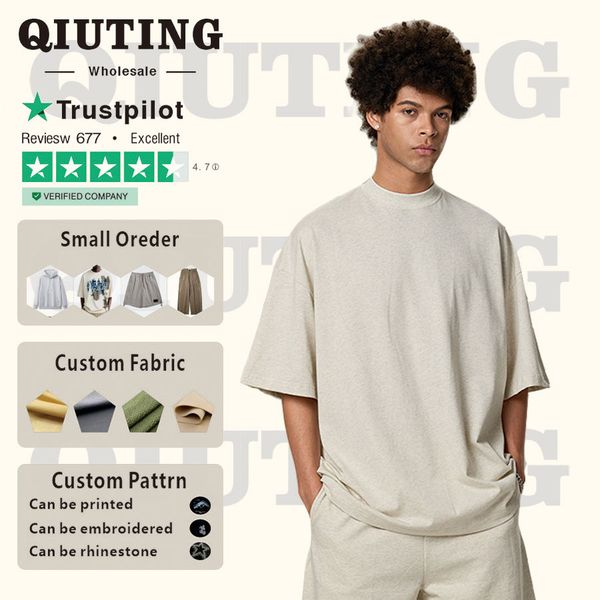 Wholesale Men's Oversized Square 230G Cotton High-neck T-shirts Heavyweight Oversized Drop Shoulder Luxury T-Shirt for Men$5.56
